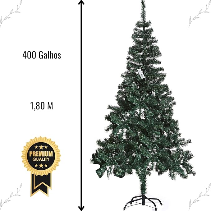 Árvore de Natal com 1,80 metros de altura e 400 galhos cuidadosamente distribuídos para criar um visual exuberante e elegante. Seu design tradicional oferece a estrutura perfeita para acomodar enfeites, luzes e adornos, transformando seu espaço em um ambiente festivo e acolhedor. Ideal para salas de estar e ambientes amplos, esta árvore proporciona uma presença marcante durante as celebrações natalinas, combinando sofisticação clássica com praticidade na montagem e decoração.