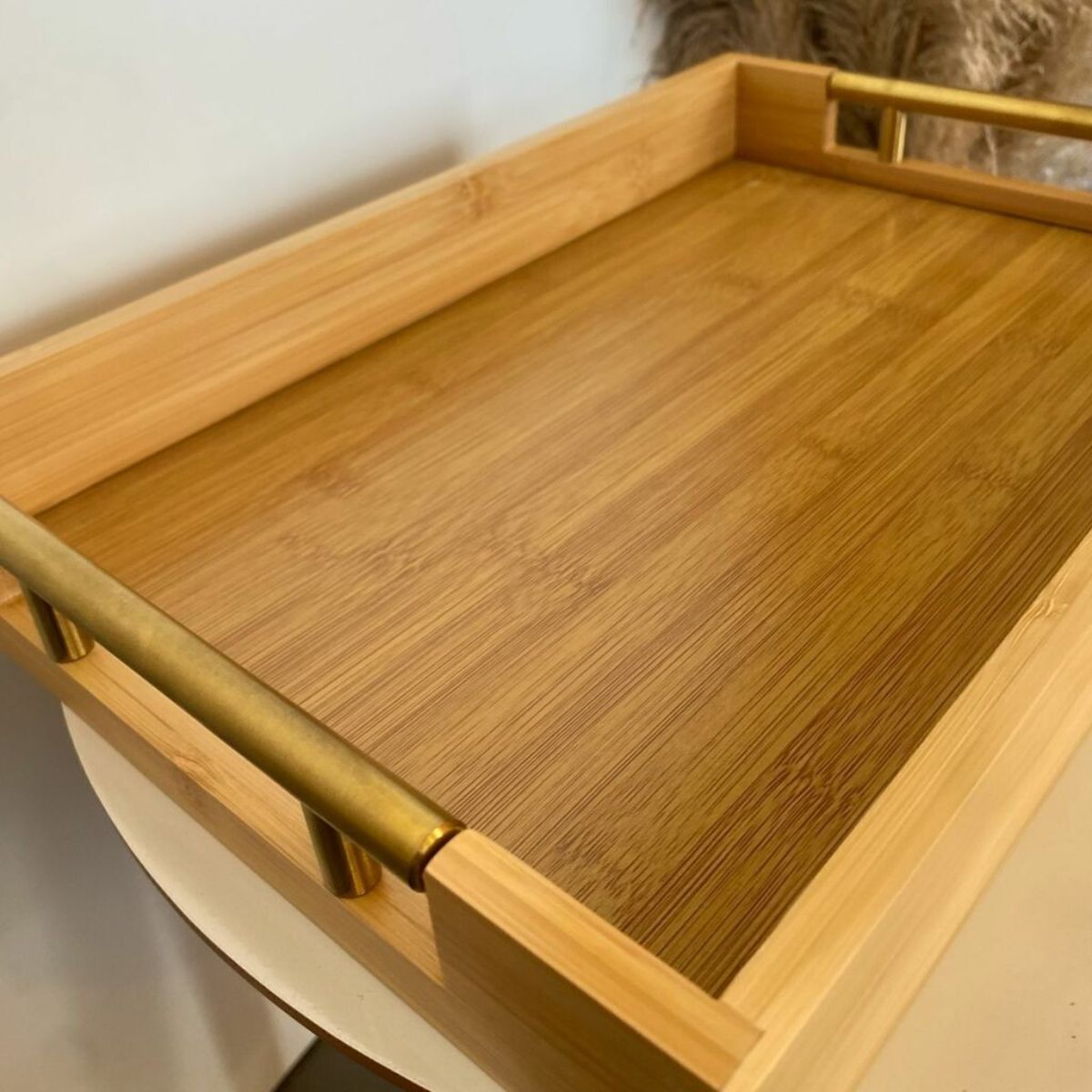 Seu design conta com alças metálicas douradas que trazem elegância e estilo, tornando-a ideal para servir café, chá, lanches, sobremesas ou até mesmo para decorar ambientes.