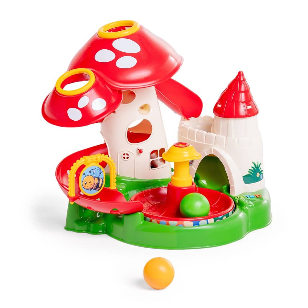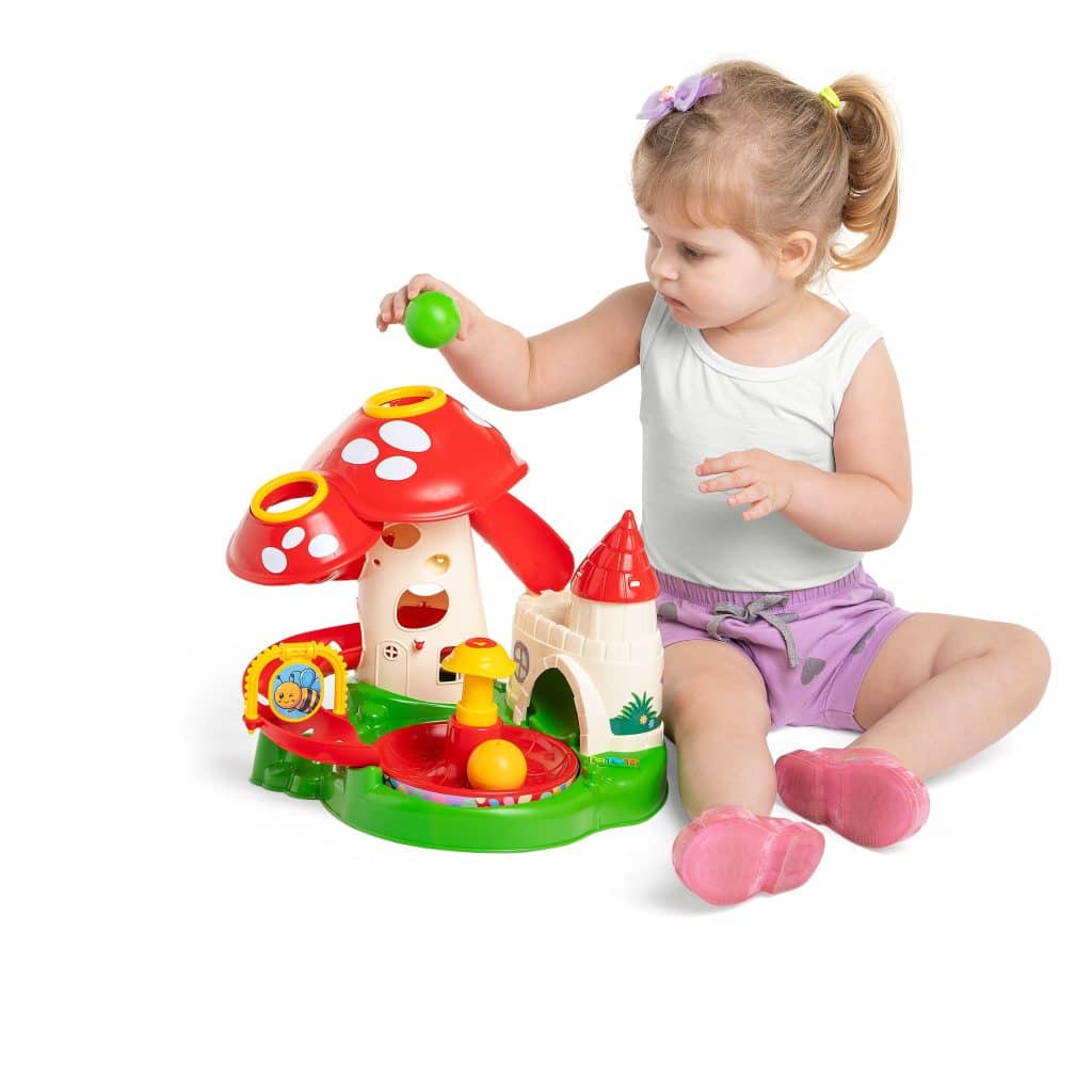 Diversão em forma de cogumelo! O Bello Cogumelo da Tateti traz três escorregadores sinuosos e uma roleta mágica para girar as bolinhas — tudo para encantar e estimular os pequenos.