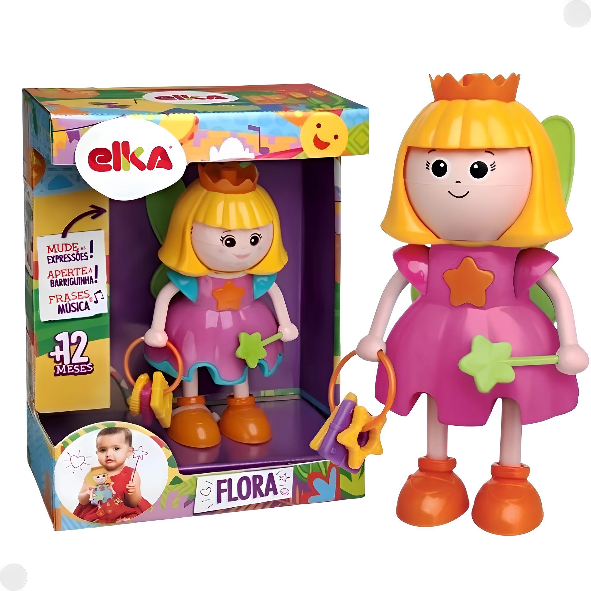 A Flora Fadinha de Atividades da Elka é uma fadinha muito legal! Ela promete horas de diversão e aprendizado para os pequenos. Com diversas atividades, esta fadinha interativa vai surpreender as crianças. Ao apertar a coroa, sua expressão muda e ao tocar na barriguinha, ela acende, fala e toca músicas encantadoras.