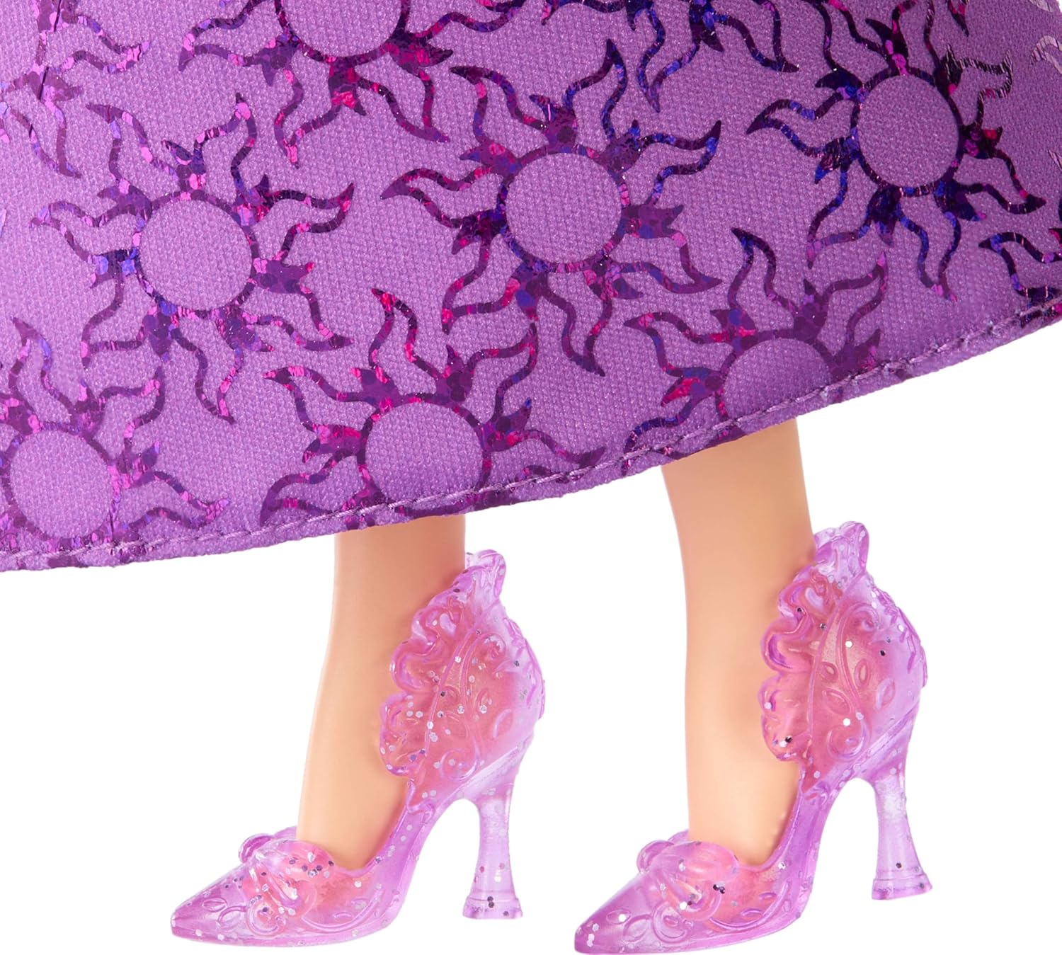 - Sua roupa inclui corpete brilhante e saia removível com um padrão exclusivo da Rapunzel.