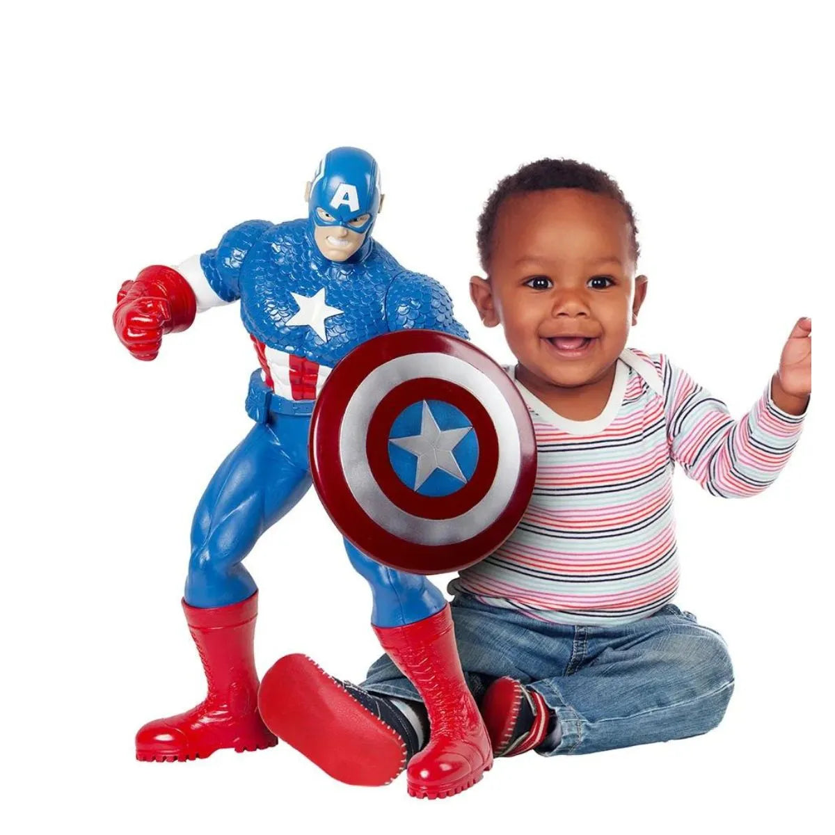 Leve para casa toda a força e coragem do super-herói mais patriota da Marvel com este incrível boneco do Capitão América! Este brinquedo traz o personagem em detalhes impressionantes, com seu clássico uniforme azul, escudo indestrutível e a estrela no peito que simboliza justiça e heroísmo.