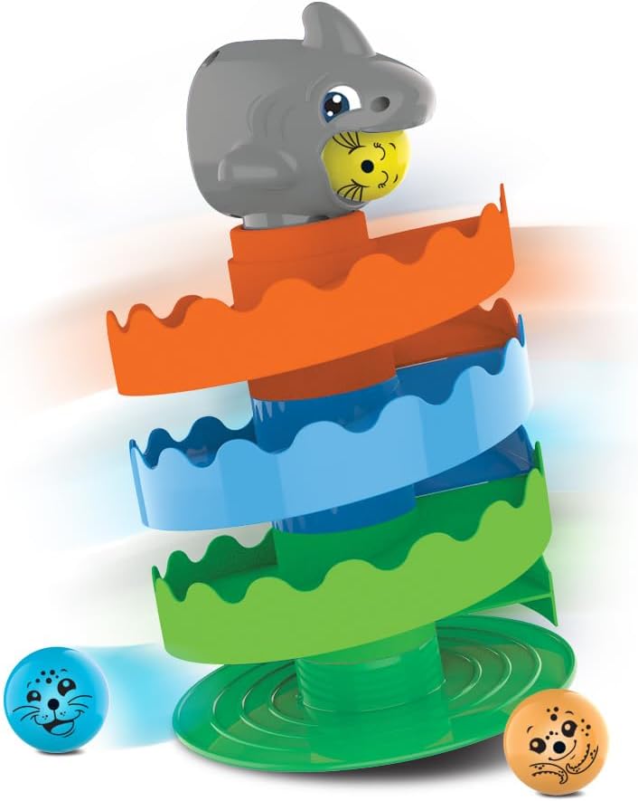 Imagine abrir espaço no chão e ver uma onda de diversão invadindo a casa: o Gira Gira Tubarão da Elka é o brinquedo que combina movimento, cor e surpresa para bebês a partir de 12 meses. A brincadeira começa quando a bolinha é colocada na boca do tubarão e, rolando pela rampa, aciona um sistema que faz toda a base balançar enquanto tudo gira — um espetáculo de causa e efeito que prende o olhar e diverte os dedinhos.