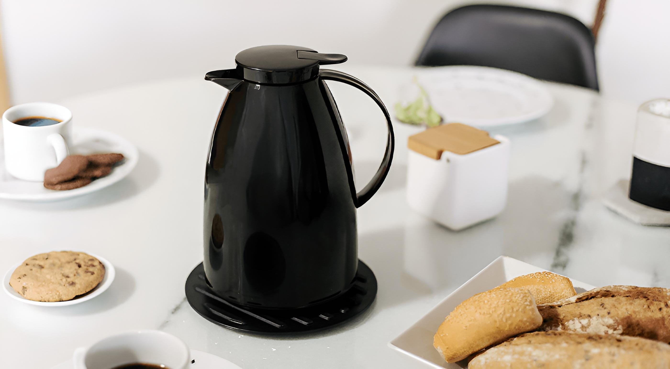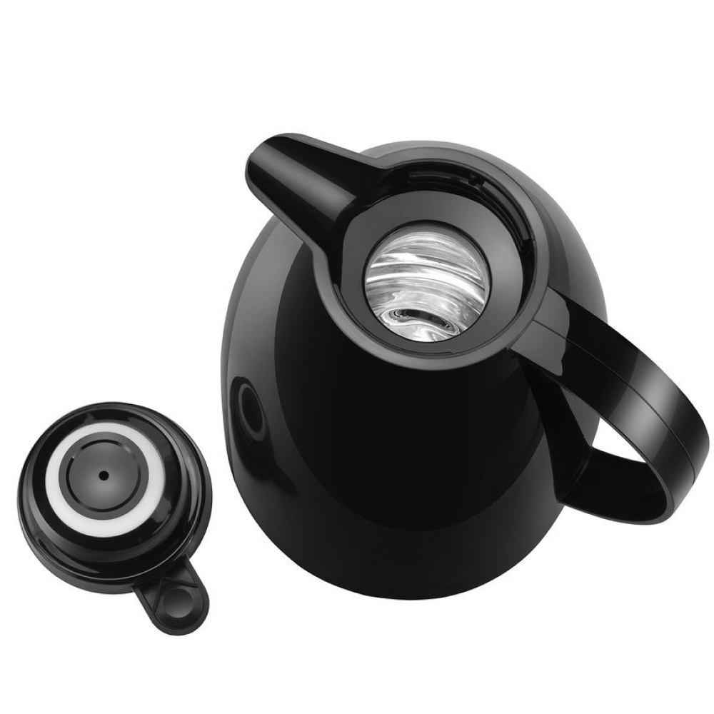 Oferece uma experiência de servir impecável, graças à sua rolha gatilho e bico corta gota, que garante precisão e praticidade a cada uso. Com ampola de vidro, ele mantém a temperatura ideal de suas bebidas, seja café, chá ou qualquer outro líquido. Seu acabamento preto e a forma suave e arredondada oferecem um toque contemporâneo, que se adapta a qualquer ambiente, seja em casa ou no escritório.