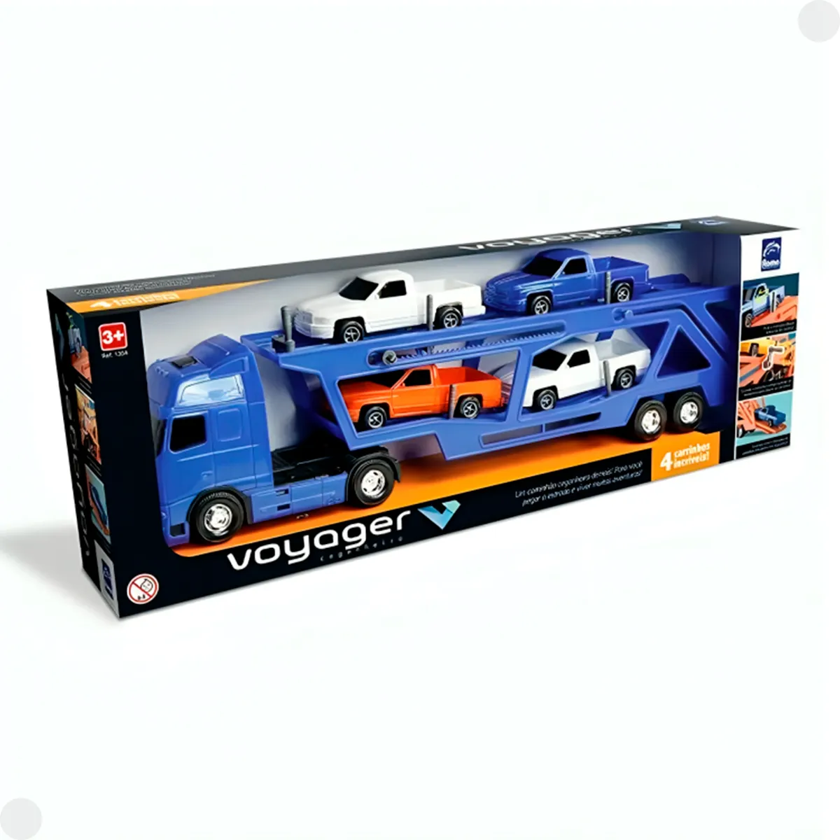 O Caminhão Voyager é o brinquedo perfeito para pequenos aventureiros que adoram transportar e organizar veículos de maneira divertida e dinâmica!