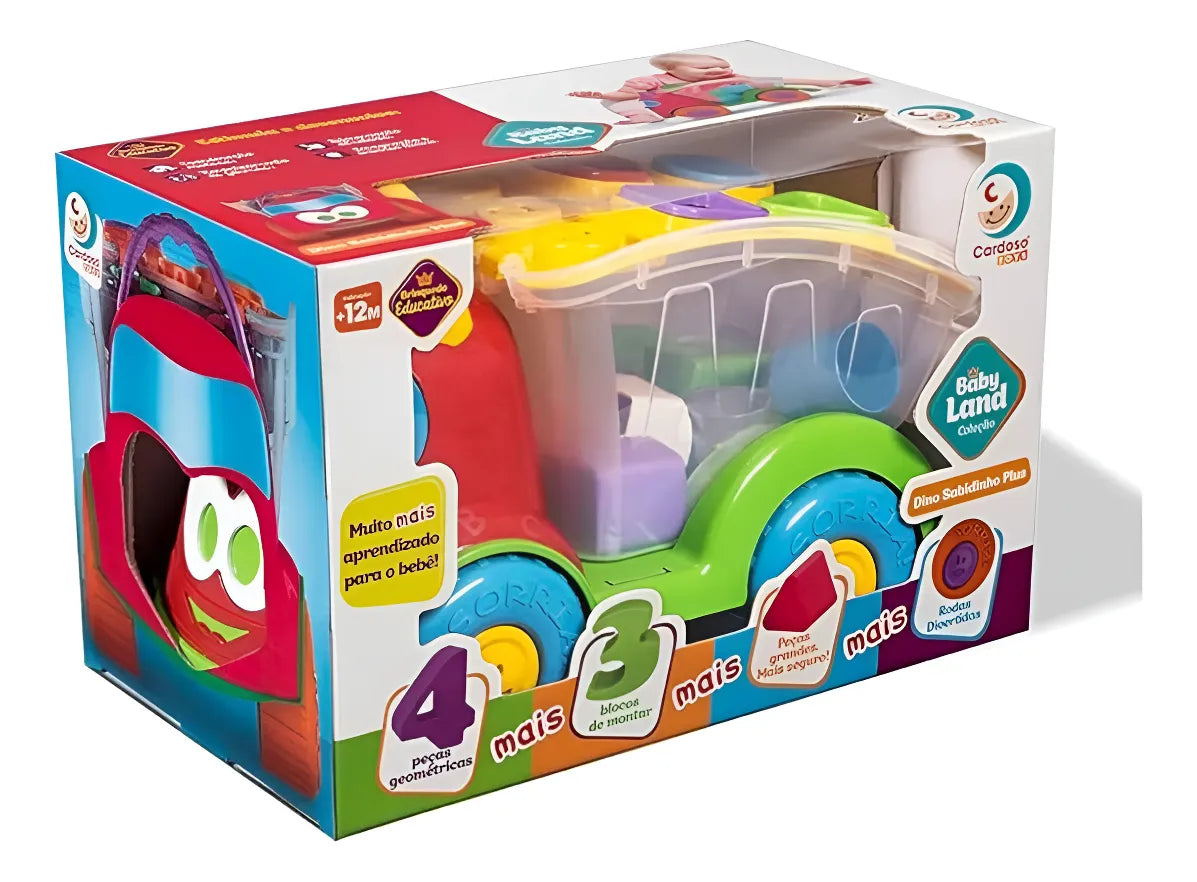 O Dino Sabidinho da Cardoso Toys é o caminhão educativo que transforma cada curva, cada encaixe e cada peça em um universo de descobertas para os pequenos. Não é apenas um brinquedo: é companheiro de jornada na infância, estimulando o reconhecimento de formas e cores, desenvolvendo a coordenação motora e incentivando o raciocínio desde o primeiro momento que a criança interage com ele. Esse caminhãozinho lúdico possui uma caçamba transparente articulada que levanta e abaixa, blocos de montar e formas geométricas coloridas — tudo preparado para envolver quem brinca com alegria e curiosidade. O movimento da caçamba para carregar e descarregar vira um ritual divertido de aprender fazendo, e as cores vibrantes capturam o olhar e instigam a imaginação.