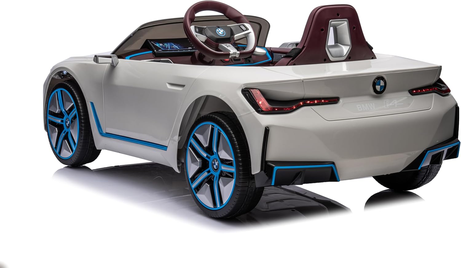 O Veículo Elétrico BMW i4 Gran Coupé 12V da Zippy Toys está disponível na cores Branco e Azul. É perfeito para presentear meninos e meninas!