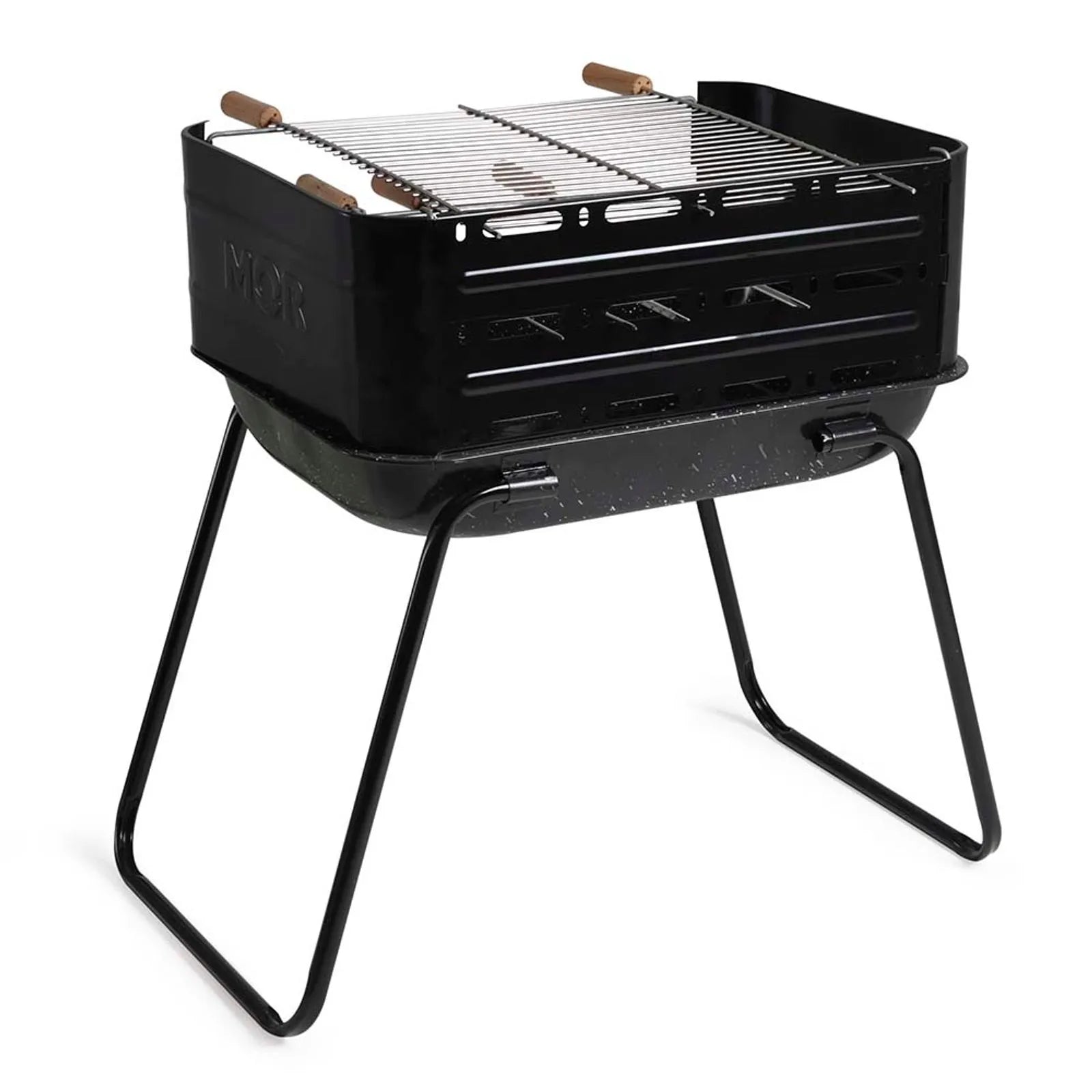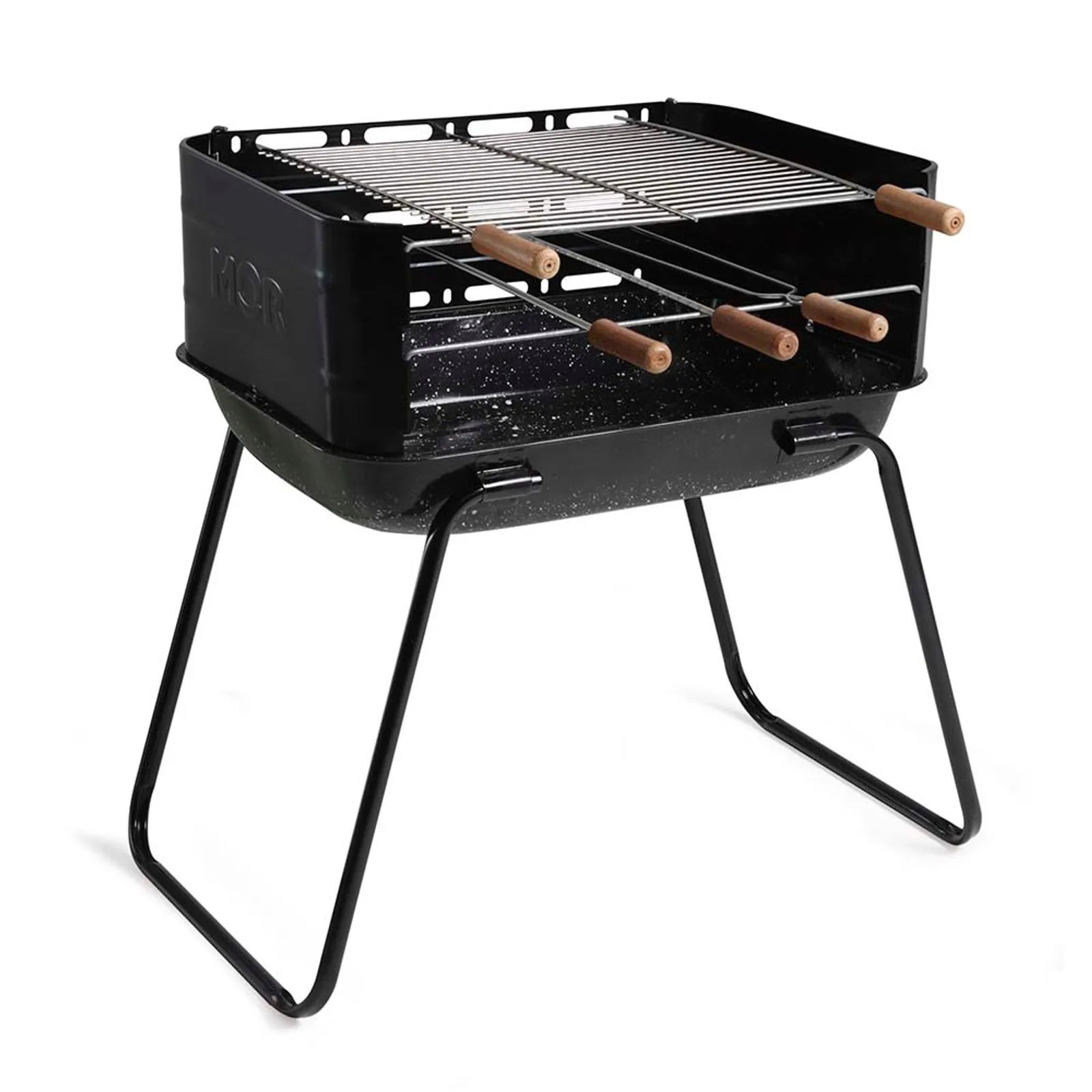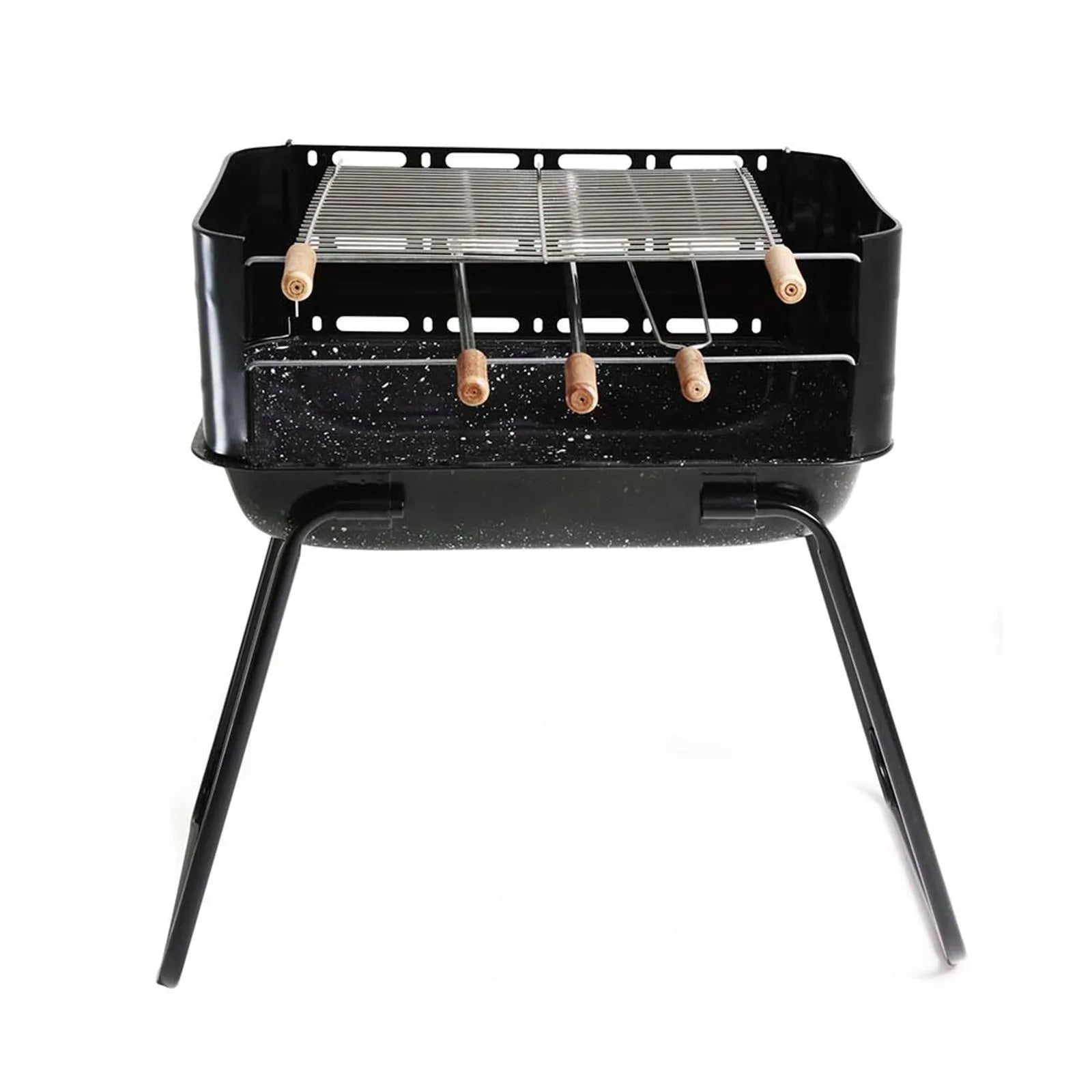 Para os amantes de um bom churrasco feito na brasa, a Churrasqueira Arizona é uma ótima opção! Sua bacia esmaltada absorve melhor o calor garantindo rapidez e uniformidade no preparo de seus assados, além de superfície lisa que permite uma limpeza muito mais rápida e prática. Com estrutura em aço esmaltado e pés em tubo de aço, ela acompanha um kit de acessórios cromados para você usar: dois espetos simples de 58 cm, um espeto duplo de 58 cm e uma grelha com cabo de madeira.