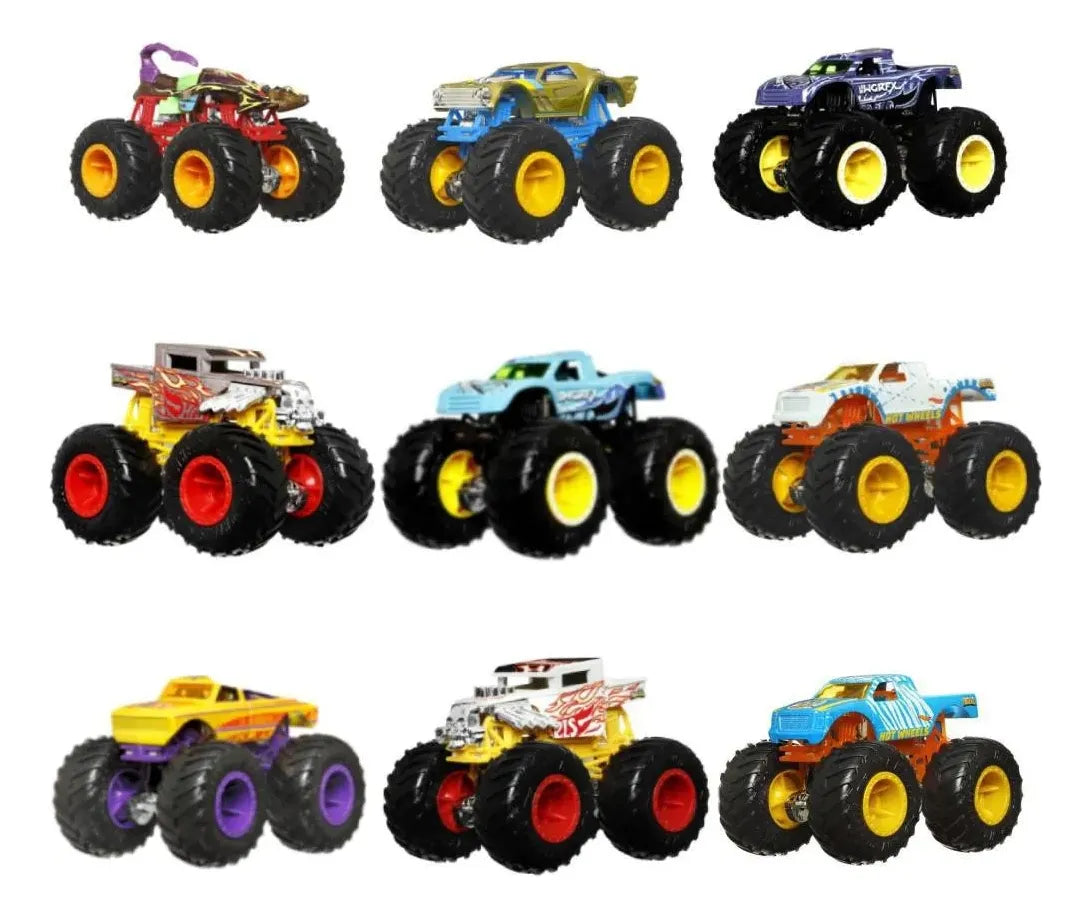 Você pode escolher seus Monster Truck favoritos e juntar todos eles para ter a frota completa. (Cada um vendido separadamente. As cores podem variar em relação as fotos.)
