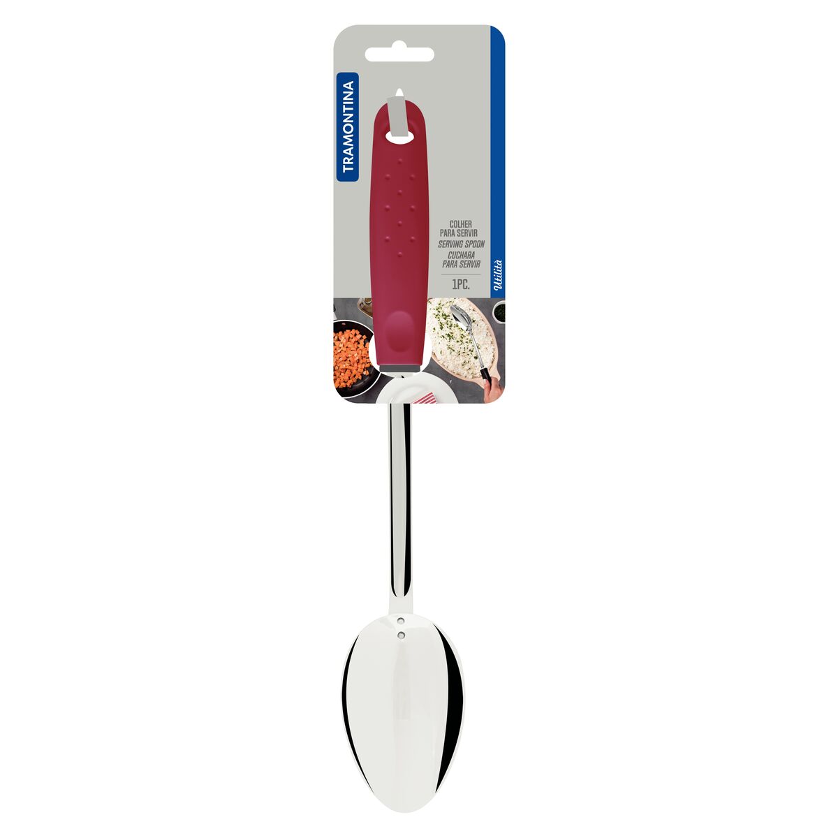 Sirva suas refeições com praticidade e estilo usando esta colher de servir resistente e funcional. Fabricada em aço inoxidável de alta qualidade, ela oferece durabilidade e resistência à corrosão, sendo ideal para o uso diário na cozinha. Seu cabo ergonômico com revestimento em material antiderrapante proporciona conforto e segurança no manuseio, mesmo com as mãos molhadas. Além disso, conta com um furo para pendurar, facilitando a organização.