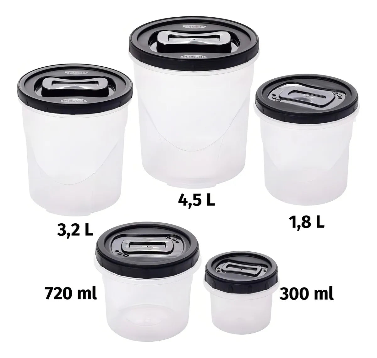 O Conjunto de 5 Potes para Mantimento Plasútil é a solução perfeita para quem busca praticidade, organização e estilo na cozinha. Produzidos em polipropileno de alta qualidade, são resistentes, duráveis e seguros para armazenar diferentes tipos de alimentos. Seu corpo transparente facilita a identificação dos mantimentos e as tampas de rosca garantem fechamento firme, mantendo os alimentos frescos por mais tempo. Além de funcionais, possuem design moderno que deixa sua cozinha ainda mais bonita e organizada.