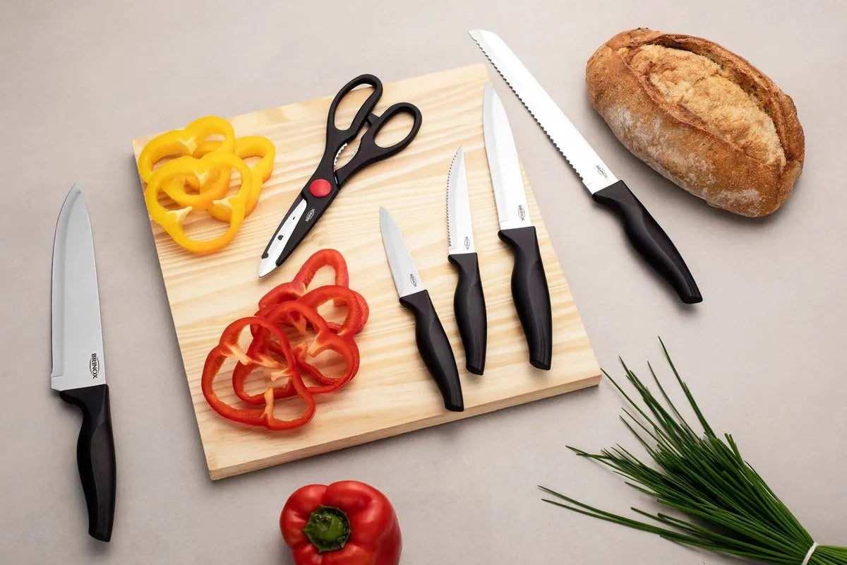 O Conjunto de Facas Brinox é a escolha ideal para quem busca praticidade e qualidade na cozinha. Com 6 peças essenciais, cada faca foi projetada para oferecer precisão e conforto no corte, atendendo a todas as suas necessidades culinárias.