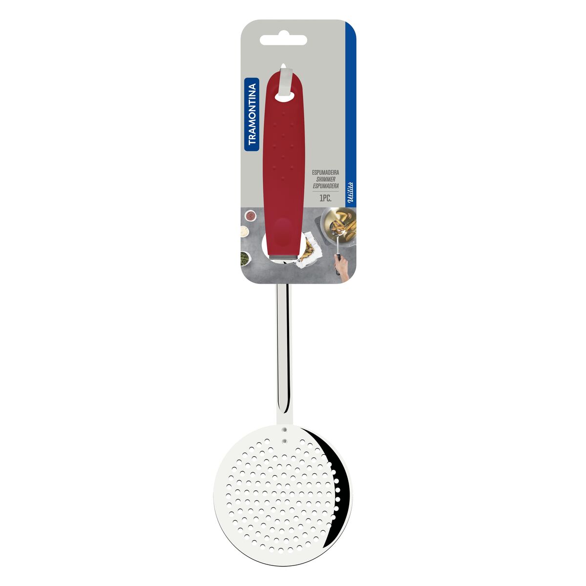 É a aliada perfeita para preparar frituras e receitas com muito mais praticidade e segurança. Ideal para escorrer alimentos fritos, separar sólidos de líquidos e facilitar o preparo de diversas receitas. Produzida em aço inox de alta qualidade, ela conta com um cabo em polipropileno resistente na cor vermelha, oferecendo um manuseio firme e confortável. Pode ir à máquina de lavar louças facilitando seu dia a dia.