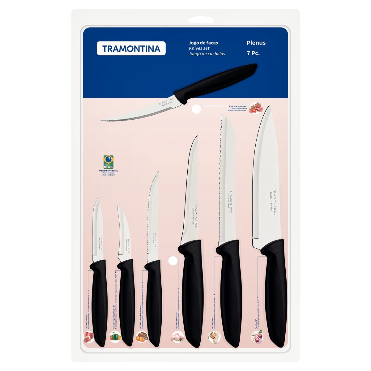 Sabe aquele item para completar sua cozinha e agregar a ela ainda mais eficiência e praticidade? Ele é com certeza, o jogo de facas Tramontina Plenus com lâminas em aço inox e cabos de polipropileno preto 07 peças.
