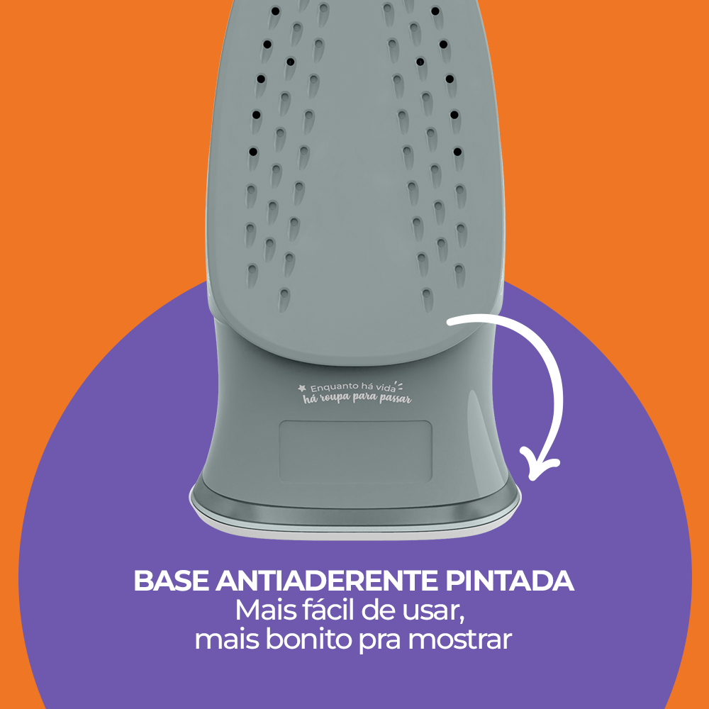Base Antiaderente Pintada: Proporciona um deslizamento suave e sem esforço, evitando que o ferro grude nas roupas e proporcionando acabamentos impecáveis.