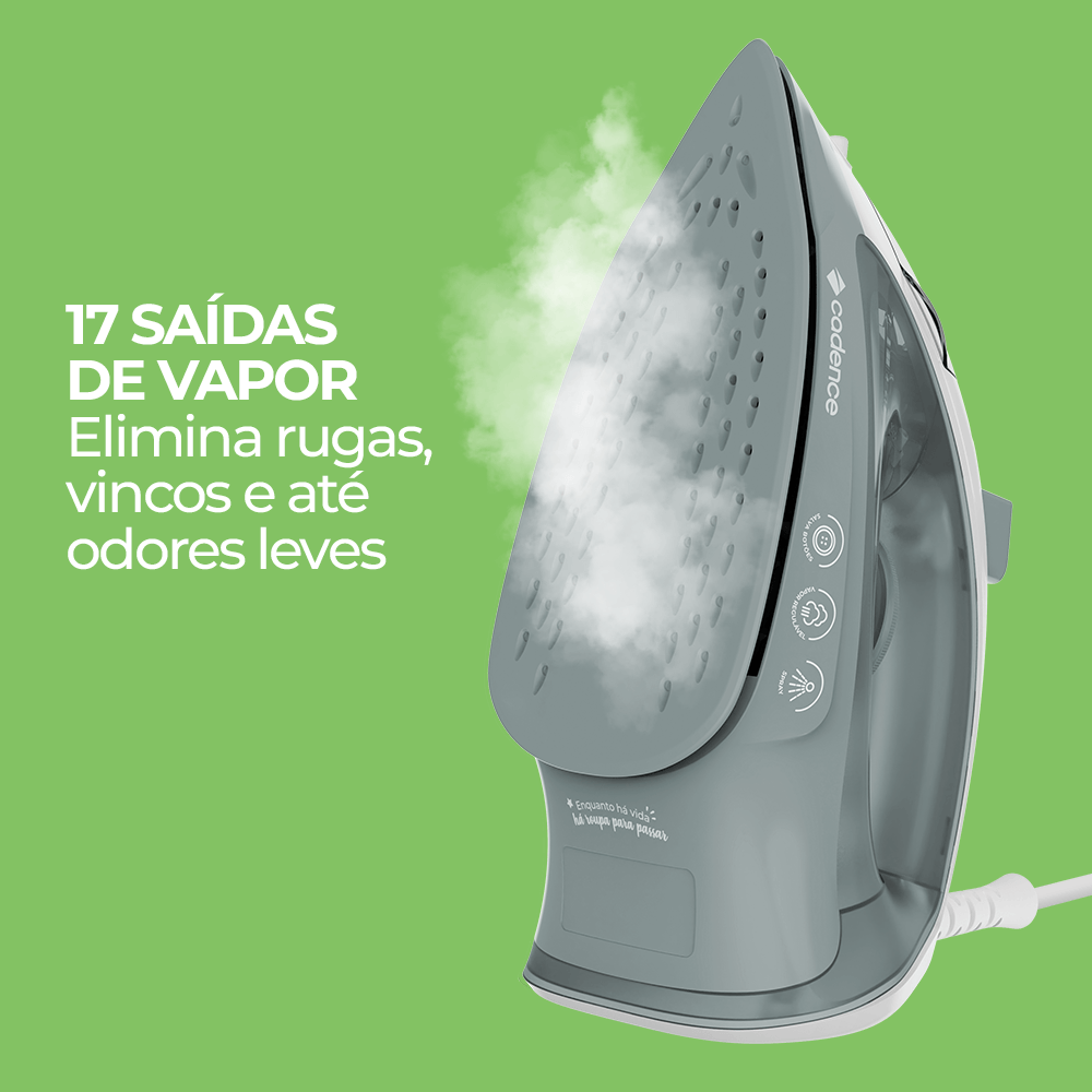 17 Saídas de Vapor: A potência de vapor ajuda a amolecer as fibras dos tecidos, eliminando rugas de maneira eficaz e deixando as roupas mais lisas rapidamente.