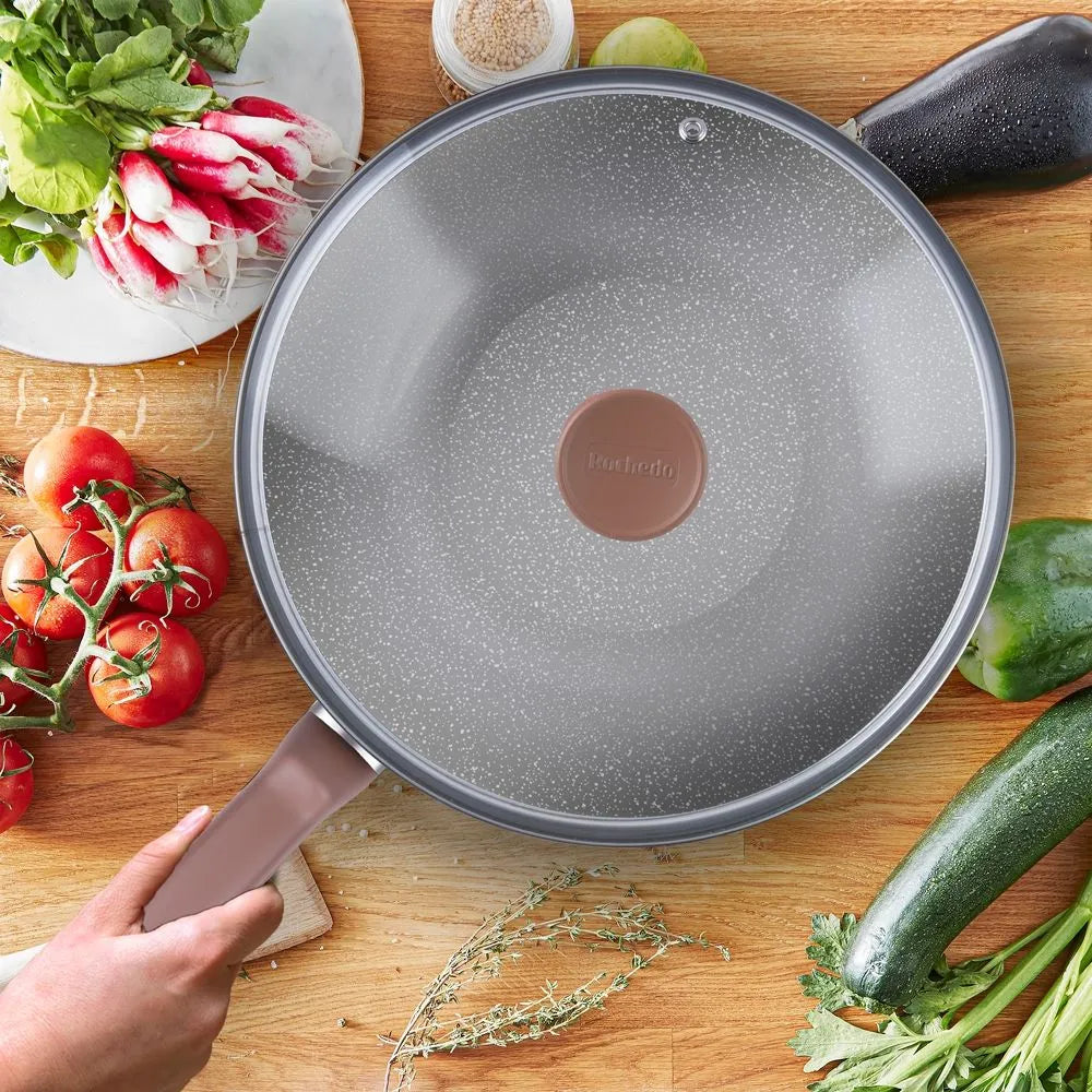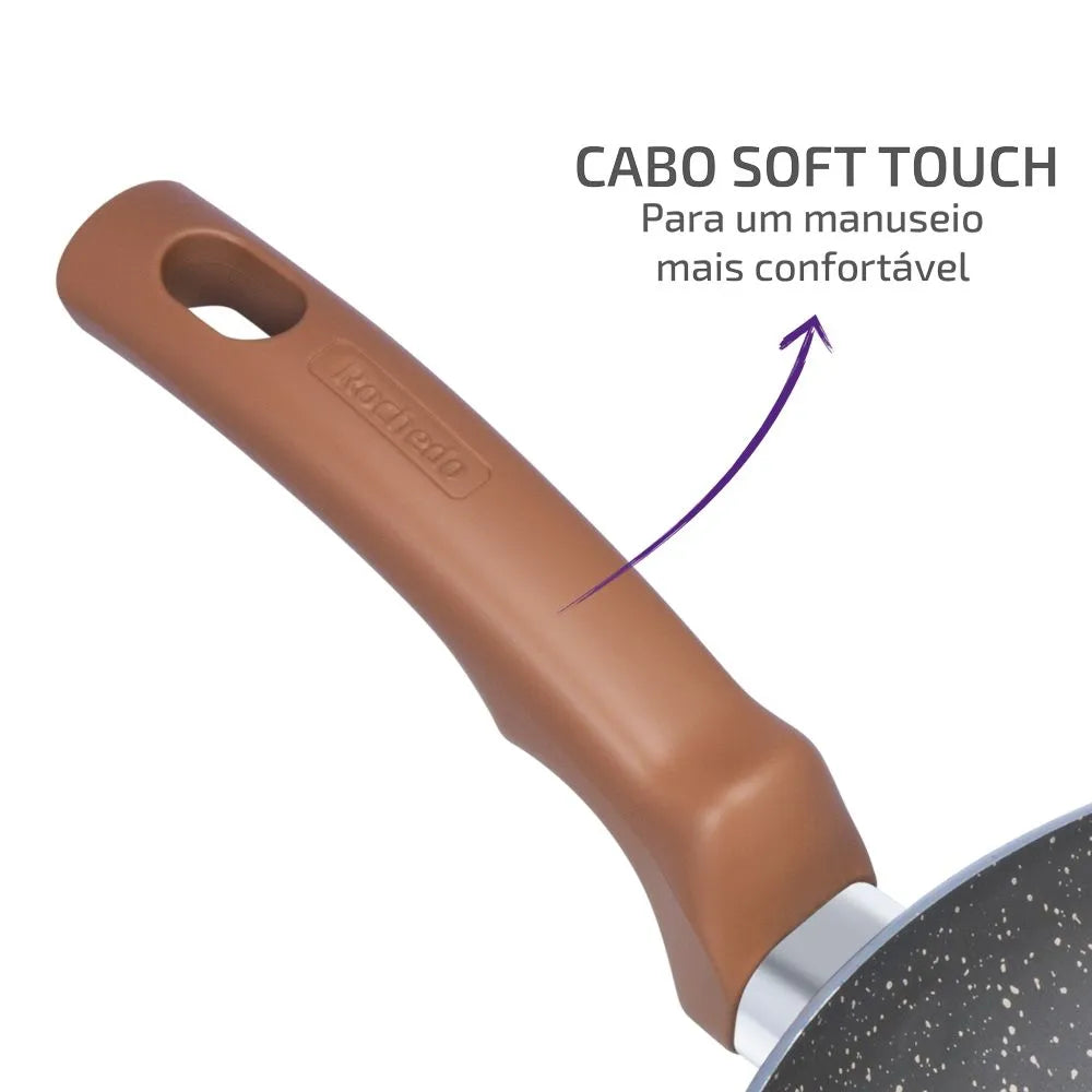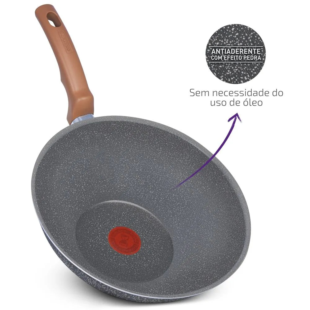 Para quem deseja praticidade e eficiência na cozinha essa é a escolha ideal. Com revestimento antiaderente de alta performance, essa frigideira permite cozinhar sem óleo, promovendo um preparo saudável e delicioso para suas receitas do dia a dia. Para garantir que sua receita fique perfeita, as frigideiras possuem a exclusiva tecnologia Thermo-Sinal que muda de cor indicando o momento ideal para selar o alimento, deixando-o mais macio e saboroso;