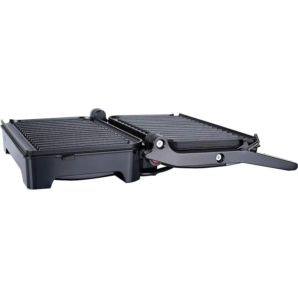 Com chapa dupla, permite preparar diversos tipos de grelhados. Desde misto quente e sanduíches a carnes e legumes. As superfícies onduladas e saída para gordura que ajudam eliminar a gordura dos alimentos. As chapas do grill se adaptam à altura dos alimentos e pode ser usado tanto aberto quanto fechado. 3 posições, aberto, fechado ou totalmente aberto (180°), O que permite preparar até 6 hambúrgueres de uma vez só!