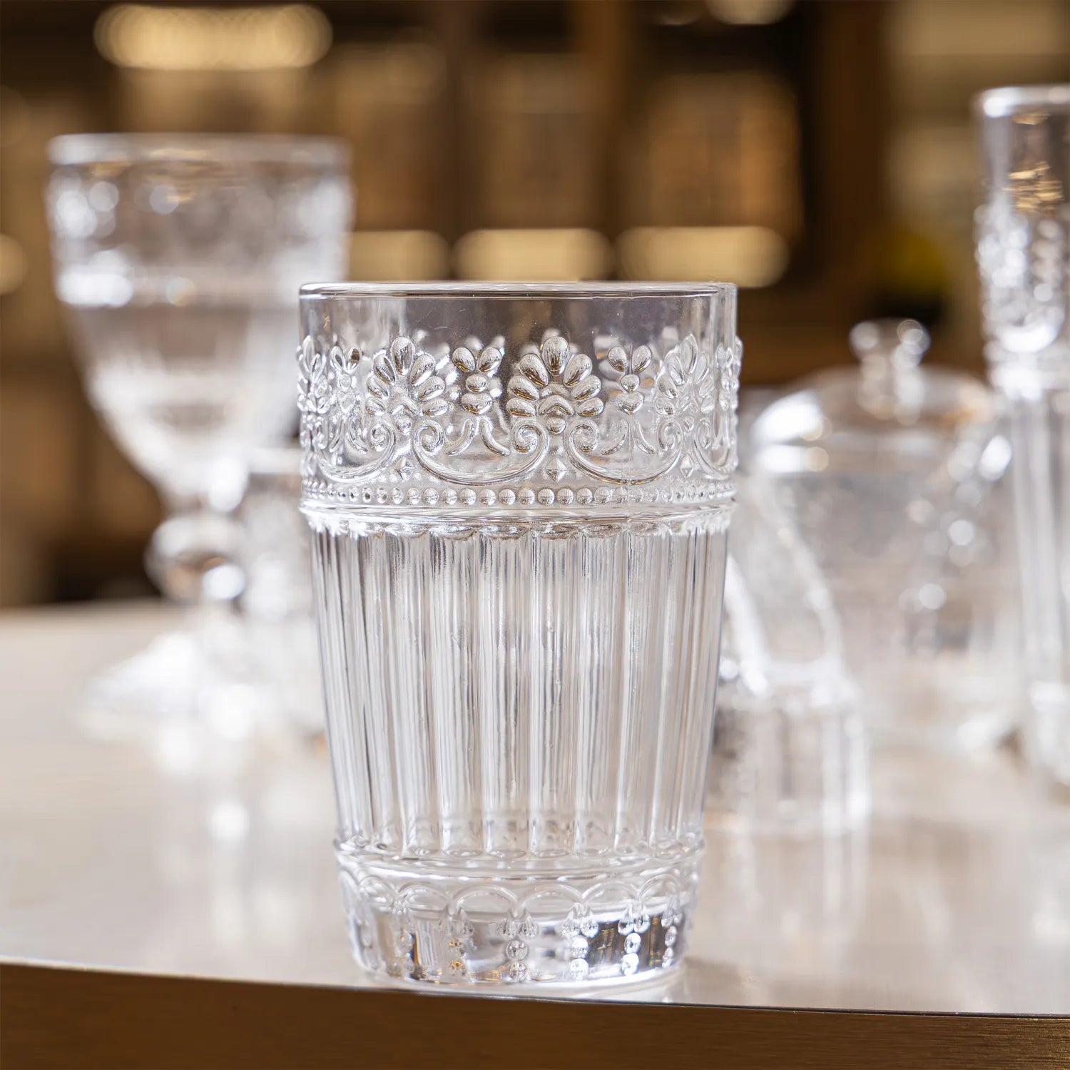 Fabricados em vidro de alta qualidade, oferecem resistência e beleza em cada peça. O acabamento com desenhos florais e linhas verticais confere um toque retrô que combina perfeitamente com mesas clássicas, rústicas ou até modernas com um toque de sofisticação.