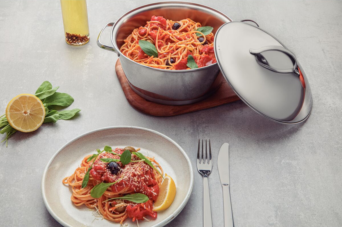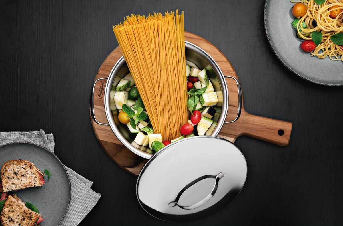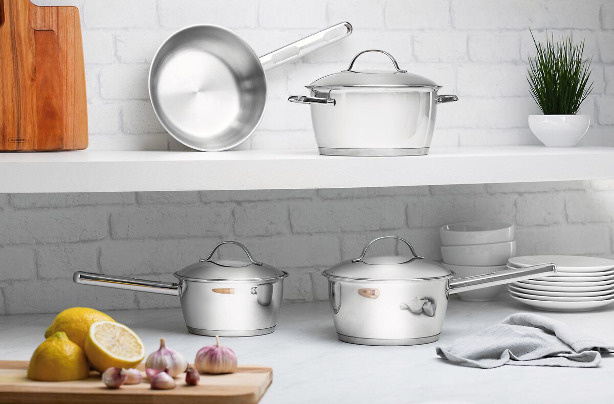 As quatro peças são totalmente produzidas em aço inox, material que garante alta durabilidade e segurança, já que não solta resíduo nos alimento; e fundo triplo (aço inox + alumínio + aço inox), característica que distribui o calor de forma uniforme, proporcionando um cozimento mais rápido e deixando os alimentos aquecidos por mais tempo, além de economizar mais energia. Acompanham tampas de inox com saída de vapor e encaixe perfeito, garantindo muito estilo e o acabamento em alto brilho fazem delas panelas modernas que embelezam sua cozinha. Fáceis de limpar, possuem desenho sem cantos que facilitam a limpeza, além de poderem ser lavadas diariamente na máquina de lavar louças. Versáteis, podem ser utilizadas nos fogões à gás, elétrico, vitrocerâmico e indução. É um jogo perfeito para você ter uma cozinha mais completa!