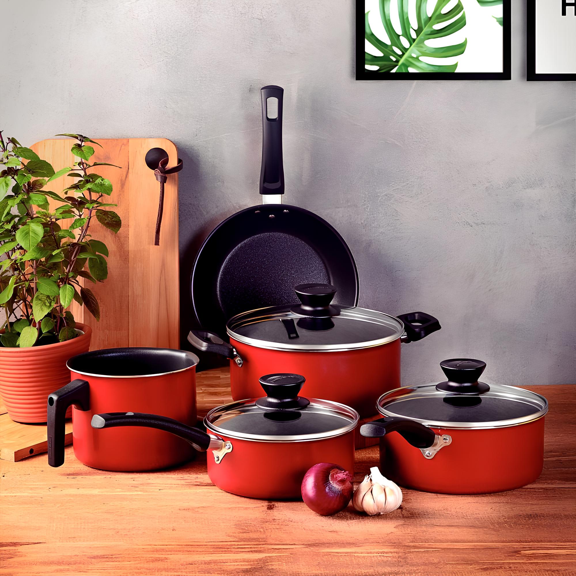 Seus cabos e alças são em baquelite antitérmico e os pegadores em nylon, material que reduzem a propagação de calor e aumentam a segurança e o conforto no manuseio. As panelas e caçarolas acompanham tampas de vidro temperado com borda de aço inox, que auxiliam no preparo e facilitam sua visualização. A escolha ideal para otimizar seu dia a dia na cozinha!