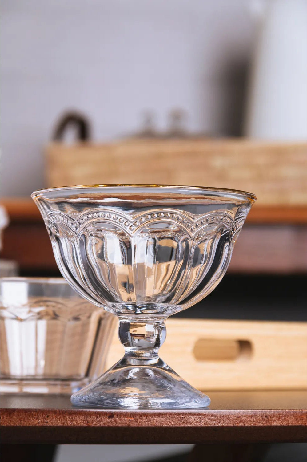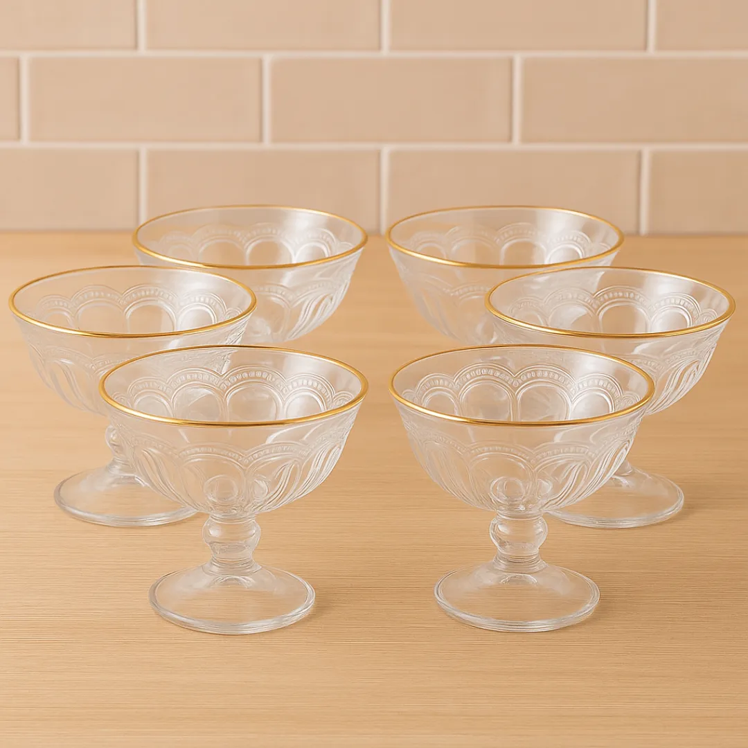 A taça oferece o tamanho perfeito para servir porções de sobremesa, garantindo praticidade e elegância na medida certa. O fio de ouro ao redor da borda da taça acrescenta um toque extra de charme, tornando suas sobremesas ainda mais atrativas.