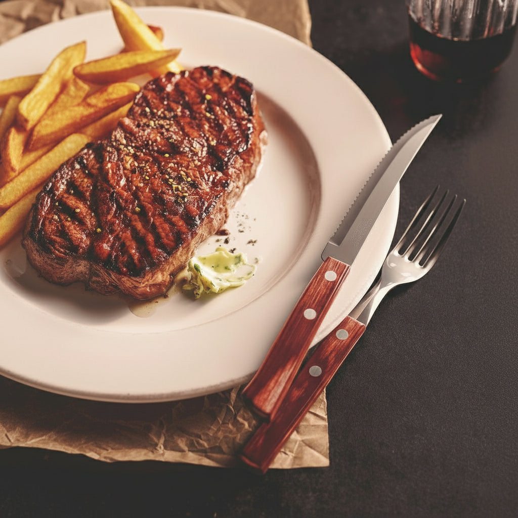 Um jogo completo da linha Churrasco que oferece facas e garfos com lâmias de aço inox, e cabos de madeira tratada Polywood resistentes à impactos e altas temperaturas, levando beleza para a mesa, além de alta qualidade e durabilidade. A escolha ideal para quem deseja que todos possam ter uma excelente experiência na hora de apreciar um bom churrasco.