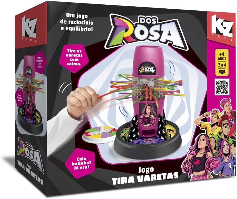 Diversão, estratégia e muita emoção em um só jogo! O Jogo Tira Varetas Dos Rosa da Elka é uma versão supercolorida e cheia de personalidade do clássico jogo de equilíbrio, inspirado no universo alegre e vibrante dos influenciadores mirins que conquistaram as crianças. Monte a torre, insira as varetas, posicione as bolinhas no topo e prepare-se para o desafio: retire uma vareta por vez sem deixar nenhuma bolinha cair!