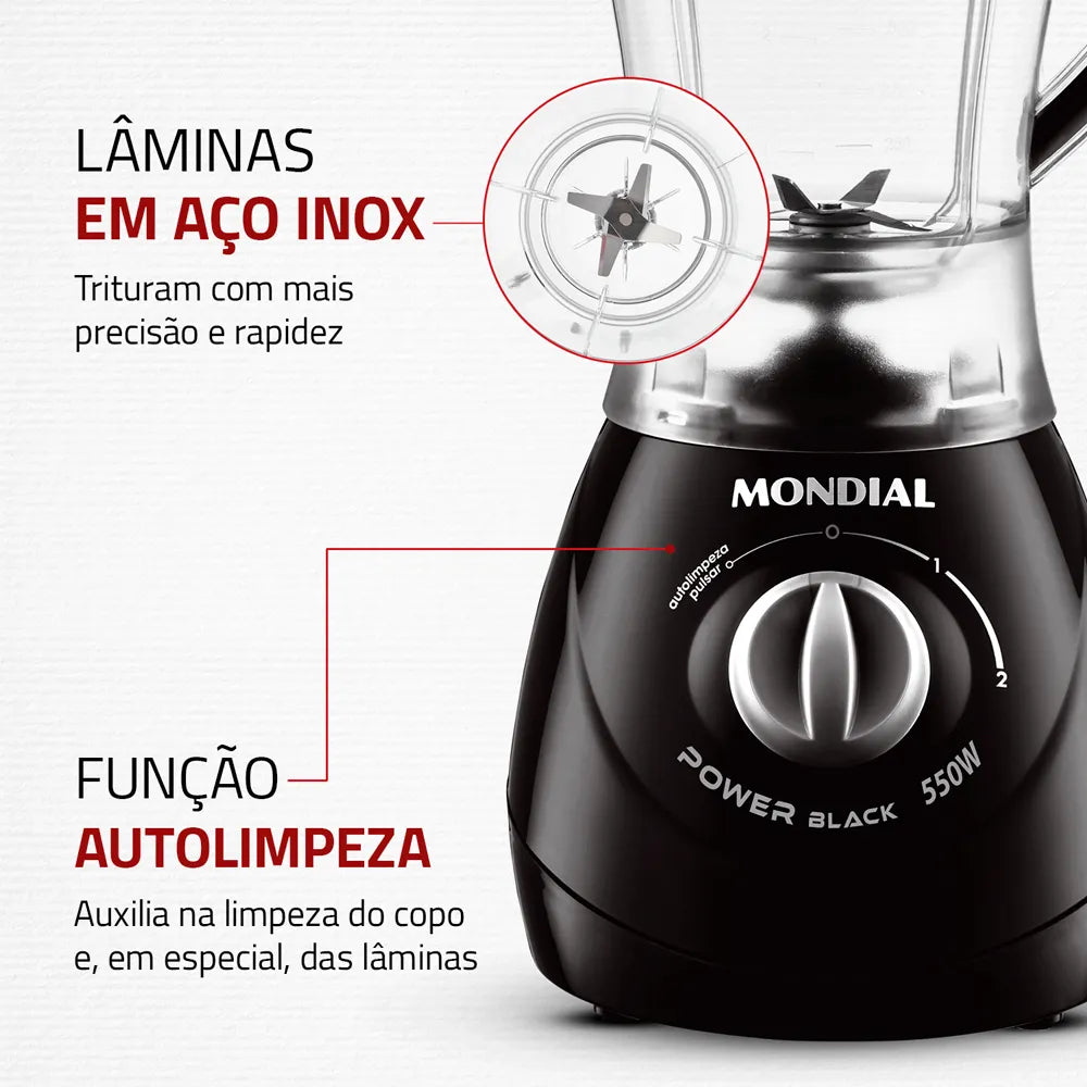 Este liquidificador é ideal para quem busca desempenho e praticidade na cozinha. Com capacidade total de 1,9 litros, ele é perfeito para preparar sucos, vitaminas, molhos e diversas receitas em maiores quantidades, atendendo toda a família. Feito para facilitar sua rotina na cozinha. Suas lâminas em inox garantem maior durabilidade e alta performance na trituração dos alimentos, inclusive os mais duros. Possui 2 velocidades + função pulsar, permitindo ajustar o preparo conforme a consistência desejada.