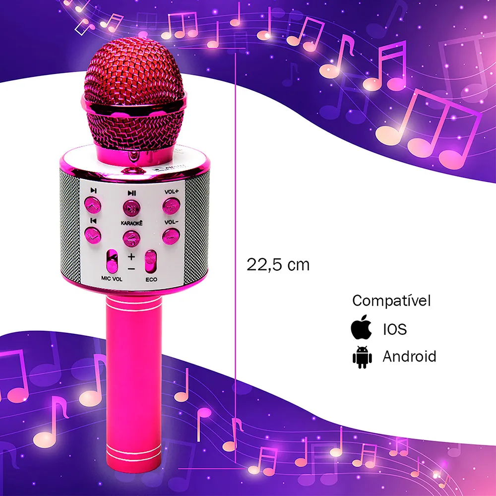 Leve o show para qualquer lugar com o Microfone Karaokê Bluetooth Show! Perfeito para festas, encontros ou momentos descontraídos em casa, ele permite que você se conecte ao seu celular ou tablet via Bluetooth e comece a cantar suas músicas favoritas em segundos. Ideal para crianças e adultos, proporcionando diversão em qualquer ocasião.