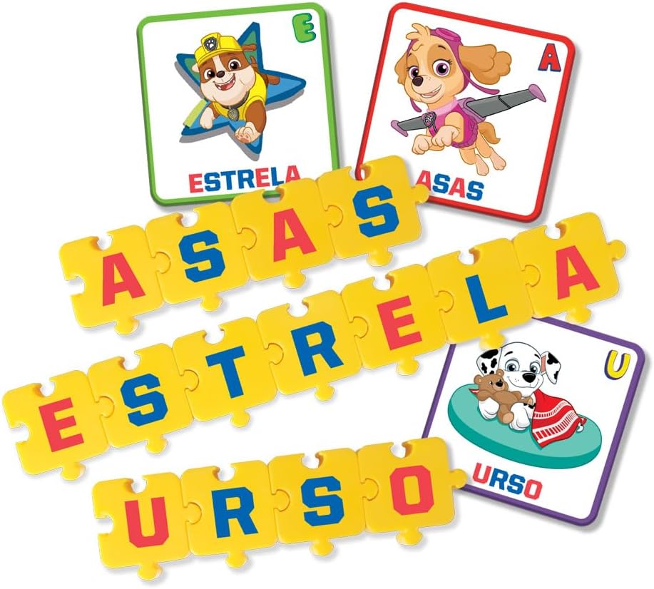 Transforme a aprendizagem das letras em uma aventura com os heróis de quatro patas da Patrulha Canina! Este jogo educativo envolve crianças em idade escolar inicial em uma dinâmica cheia de cores, letras e descobertas: com peças plásticas do alfabeto e cartas ilustradas, cada palavra formada vira parte de uma brincadeira divertida.