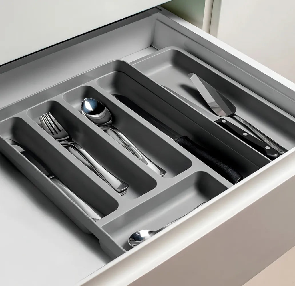 Esse organizador de talheres extensível oferece praticidade e elegância para sua cozinha. Com design moderno e funcional, ele permite acomodar talheres de diferentes tamanhos e formatos, otimizando o espaço da gaveta.