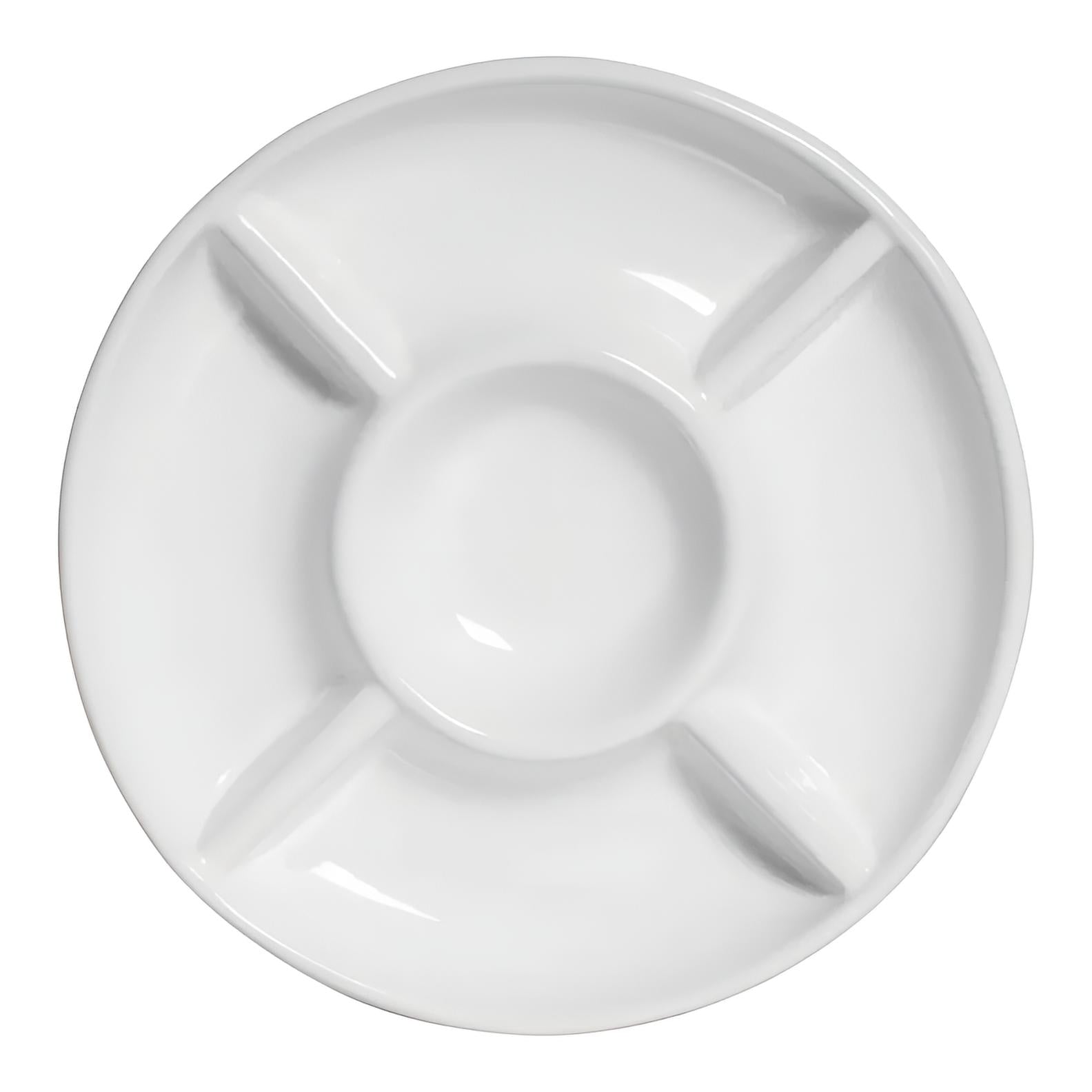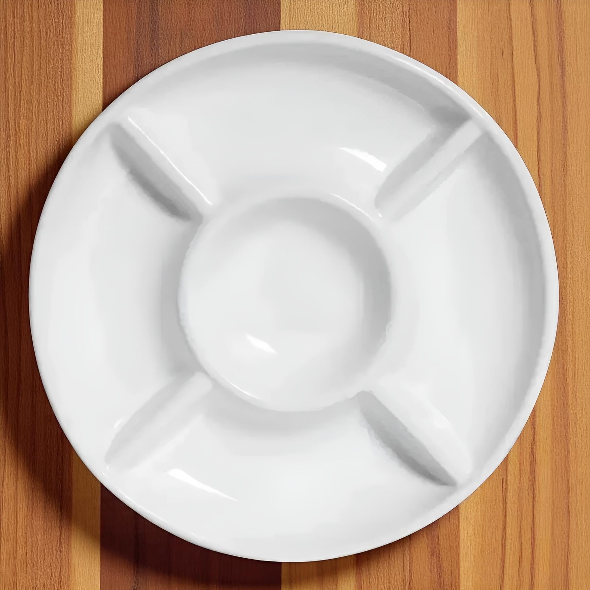 Fabricada em cerâmica branca e no formato redondo, ela conta com cinco divisórias, assim fica ainda mais fácil servir seus amigos e familiares com maior diversidade de petiscos. Com certeza, com essa linda petisqueira, seus convidados se sentirão bem servidos, seja em um final de semana, no churrasco ou para assistir um jogo de futebol.