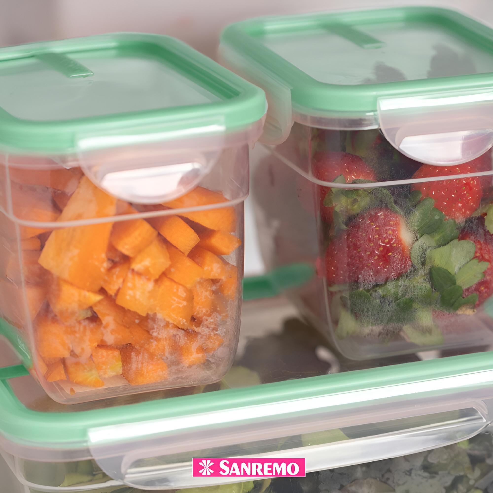 Este recipiente é ideal para conservar alimentos na geladeira, freezer ou até mesmo para levar na bolsa térmica. Seu design moderno com tampa verde e travas laterais garante vedação eficiente, evitando vazamentos e mantendo o sabor e a qualidade dos alimentos por mais tempo. Fabricado em material resistente, livre de BPA. Mantenha seus alimentos sempre frescos com o Pote Hermético
