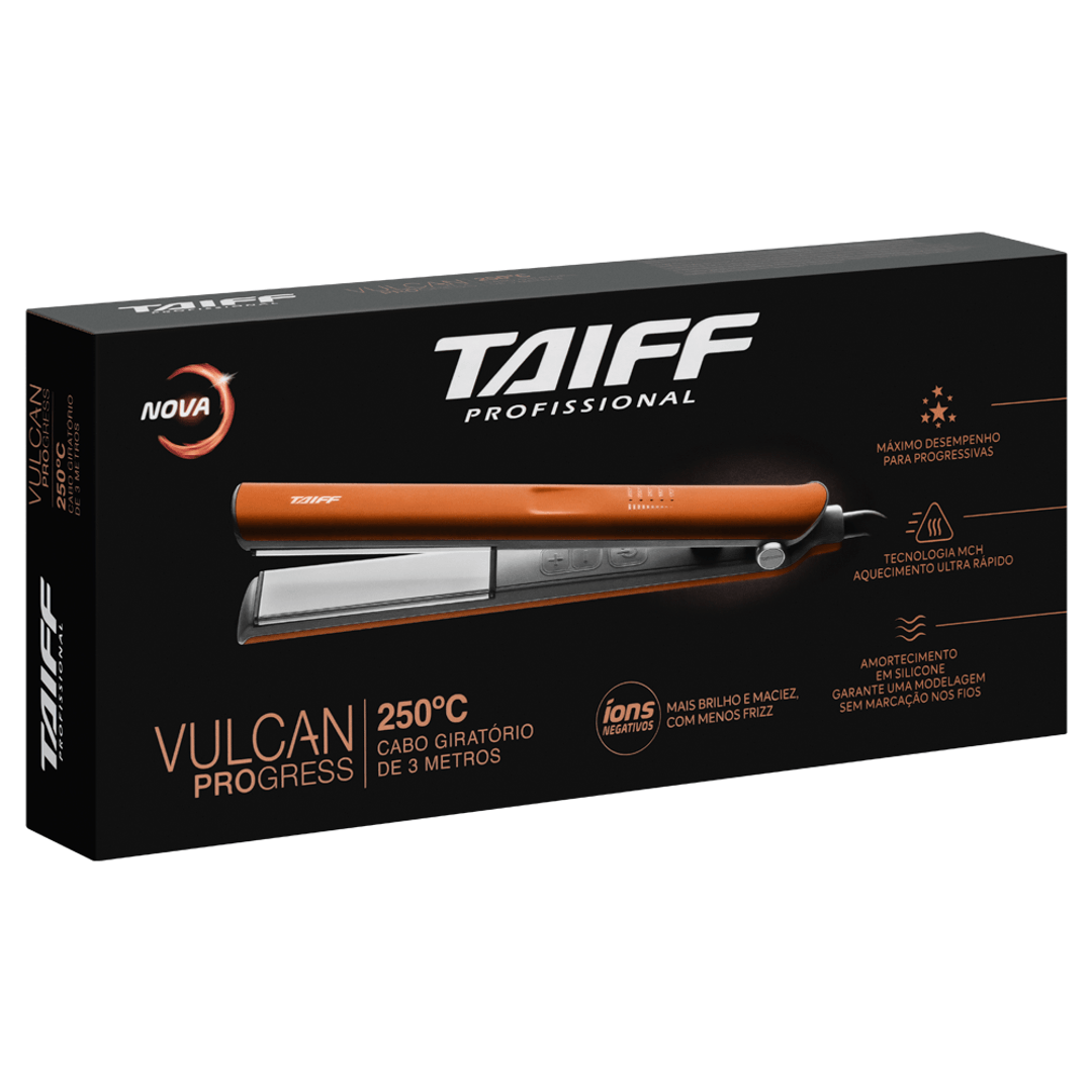 Com 5 temperaturas, entre 170°C e 250°C, a chapa Vulcan Progress foi desenvolvida para o profissional atingir o melhor desempenho em progressivas, nos mais diversos tipos de cabelo.