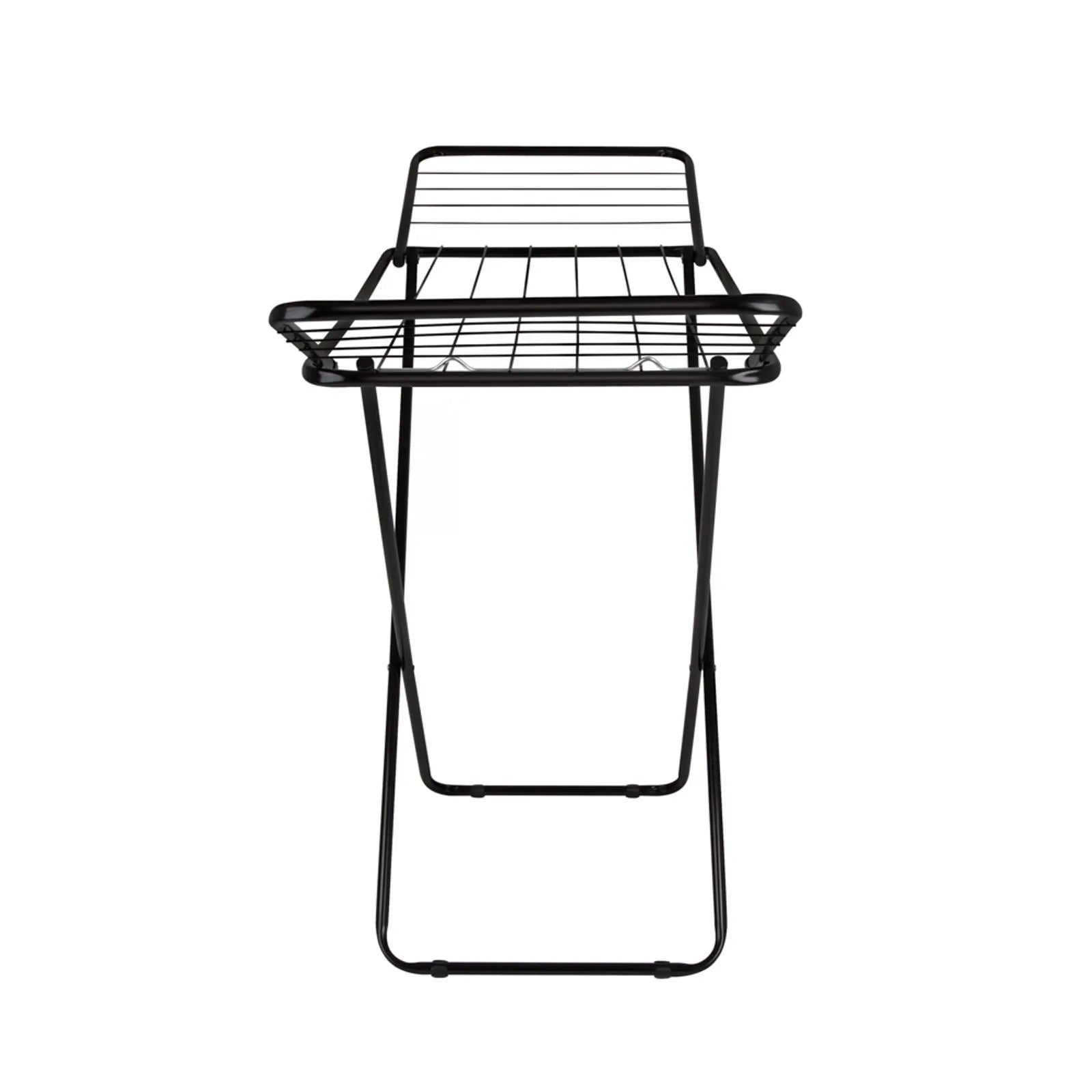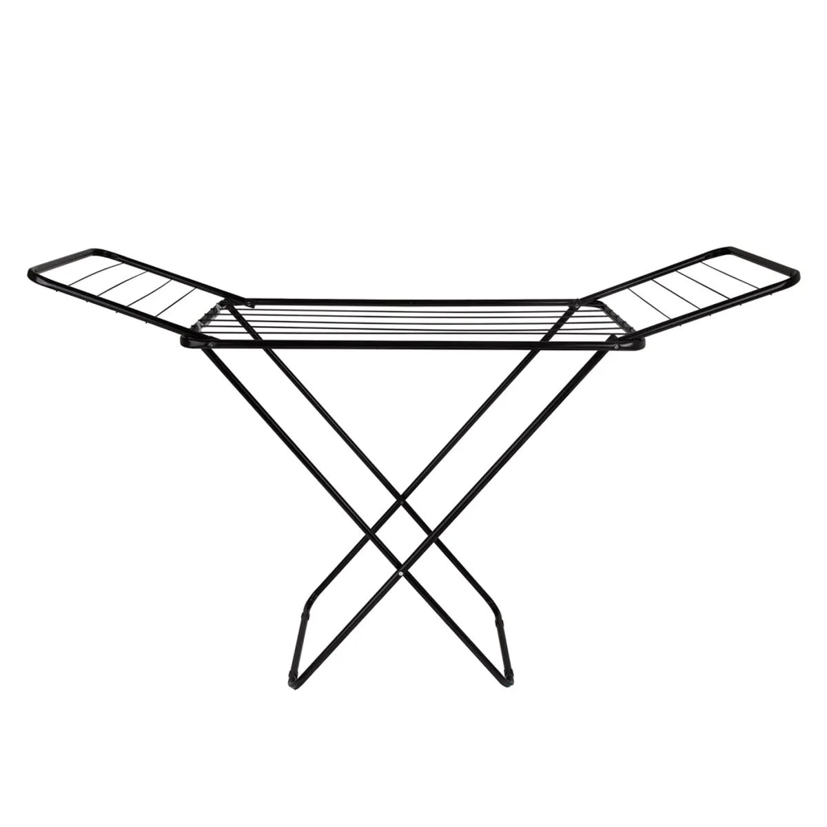 Sua estrutura foi desenvolvida em tubo de aço com acabamento em pintura epóxi a pó preta, que proporciona um visual moderno. Suas peças plásticas são de polipropileno, incluindo as ponteiras em seus pés que ajudam a proteger o piso. Ideal para quem busca praticidade e qualidade em um mesmo produto, o varal otimiza seu espaço distribuindo seis varetas resistentes no centro e duas abas com quatro varetas cada com capacidade para até 11m de roupas ou 20Kg distribuídos. Assim que recolher suas roupas, você guarda o seu varal dobrado em qualquer lugar. Perfeito para manter a organização da sua casa!
